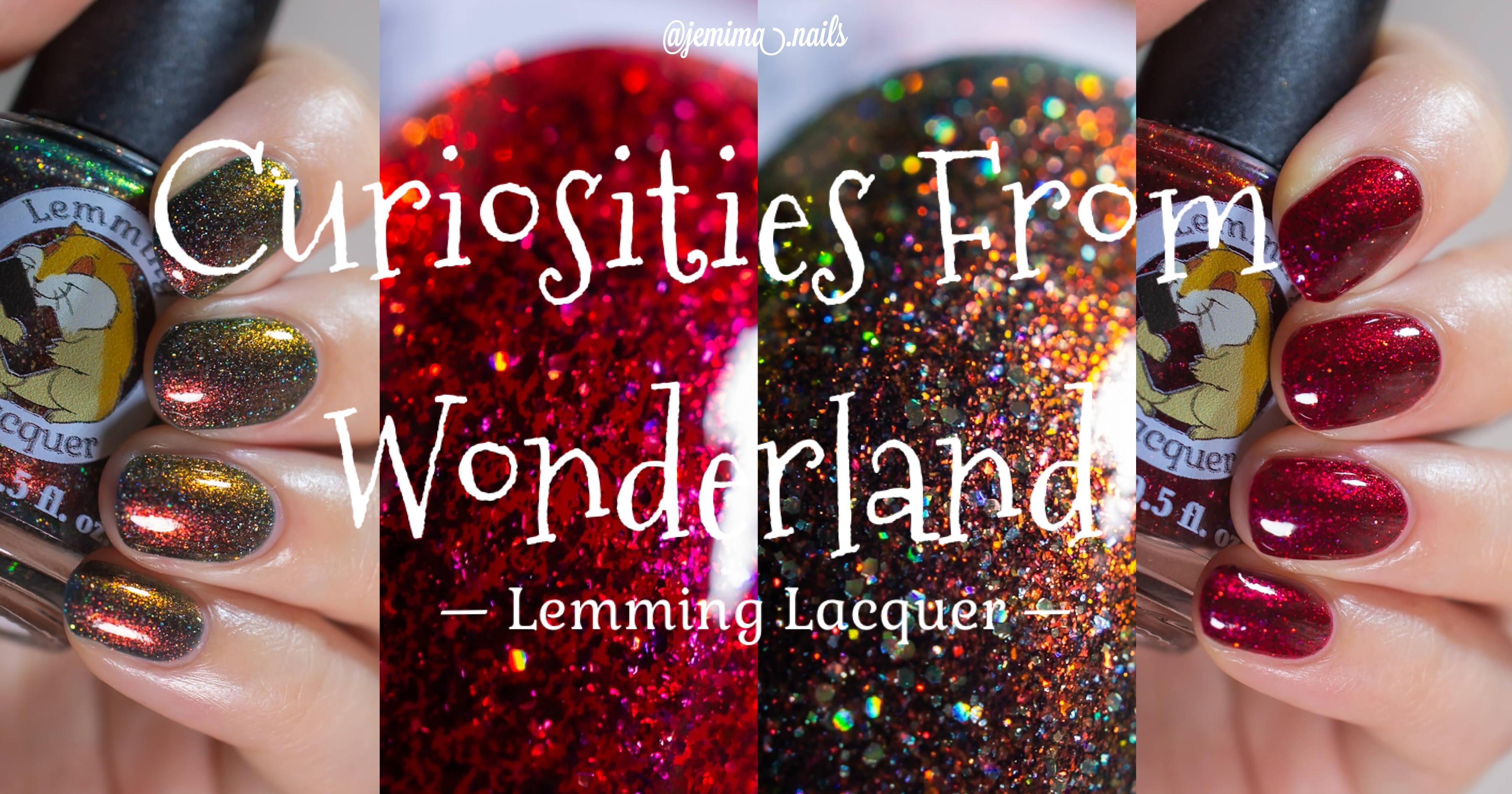 同樣是這週五上市的 Lemming Lacquer 新色還有兩支,是舊系列 Curiosities From Wonderland 的追加色。Curiosities From Wonderland 是 Lemming Lacquer 十年前剛創立的時候的第一個系列。今年剛好是品牌的十週年,所以 Cassie 想要藉由這個機會紀念一下他們的第一個系列。Curiosities From Wonderland 是個以愛麗絲夢遊仙境的各種改編作品(例如:書籍、電影、音樂等)為靈感的一個系列。讓我們一起來看這次新增的兩個顏色吧!
