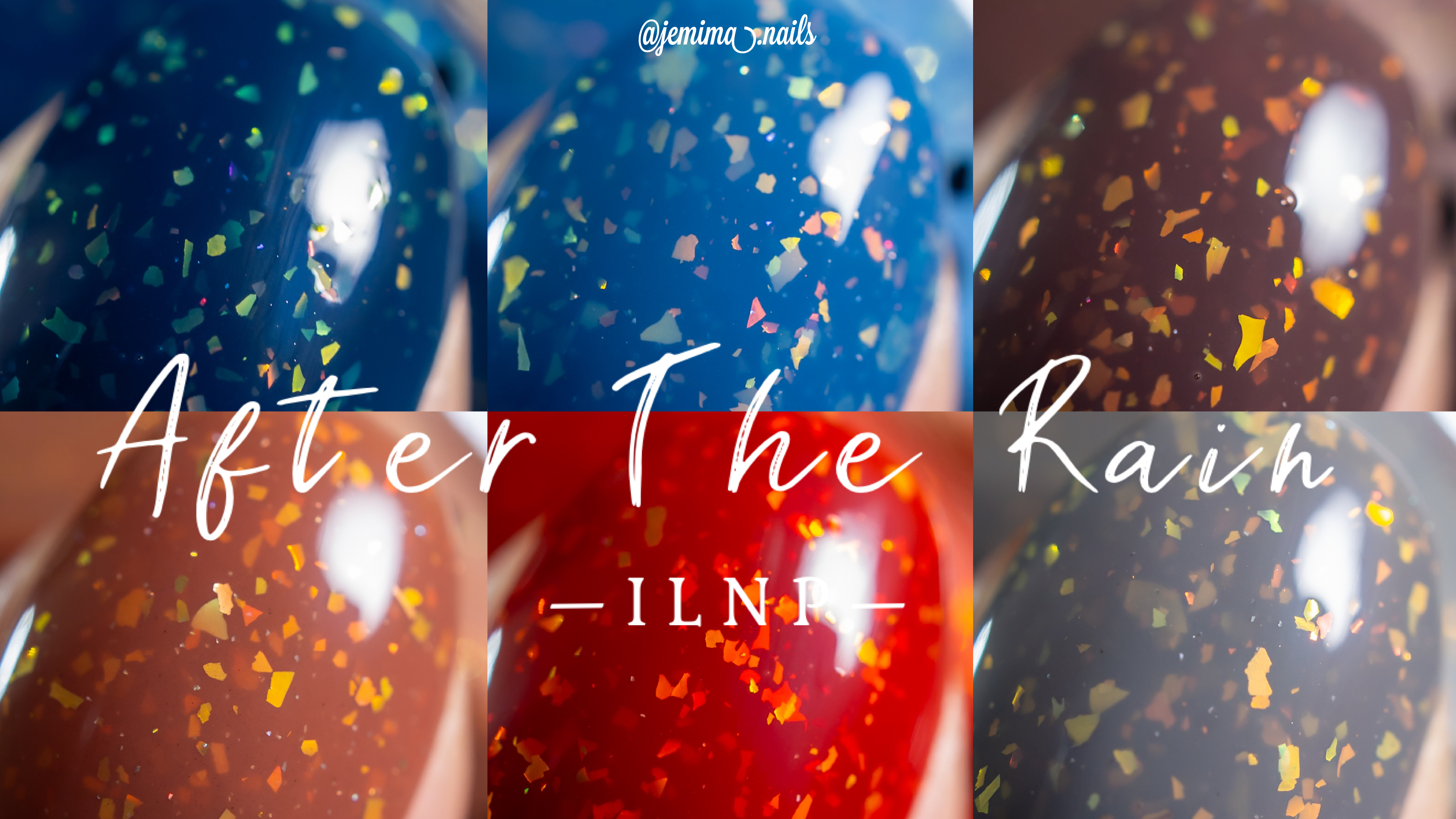 How’s the weather where you live? Here in Taipei, it is still very hot and humid. However, I will never say no to autumn colors! Fall collections have always been my favorite. And I’m so happy to swatch the new ILNP fall collection. After The Rain collection features 6 beautiful autumnal flakies inspired by the rainy season. So grab your umbrella, let’s go dancing in the rain!
